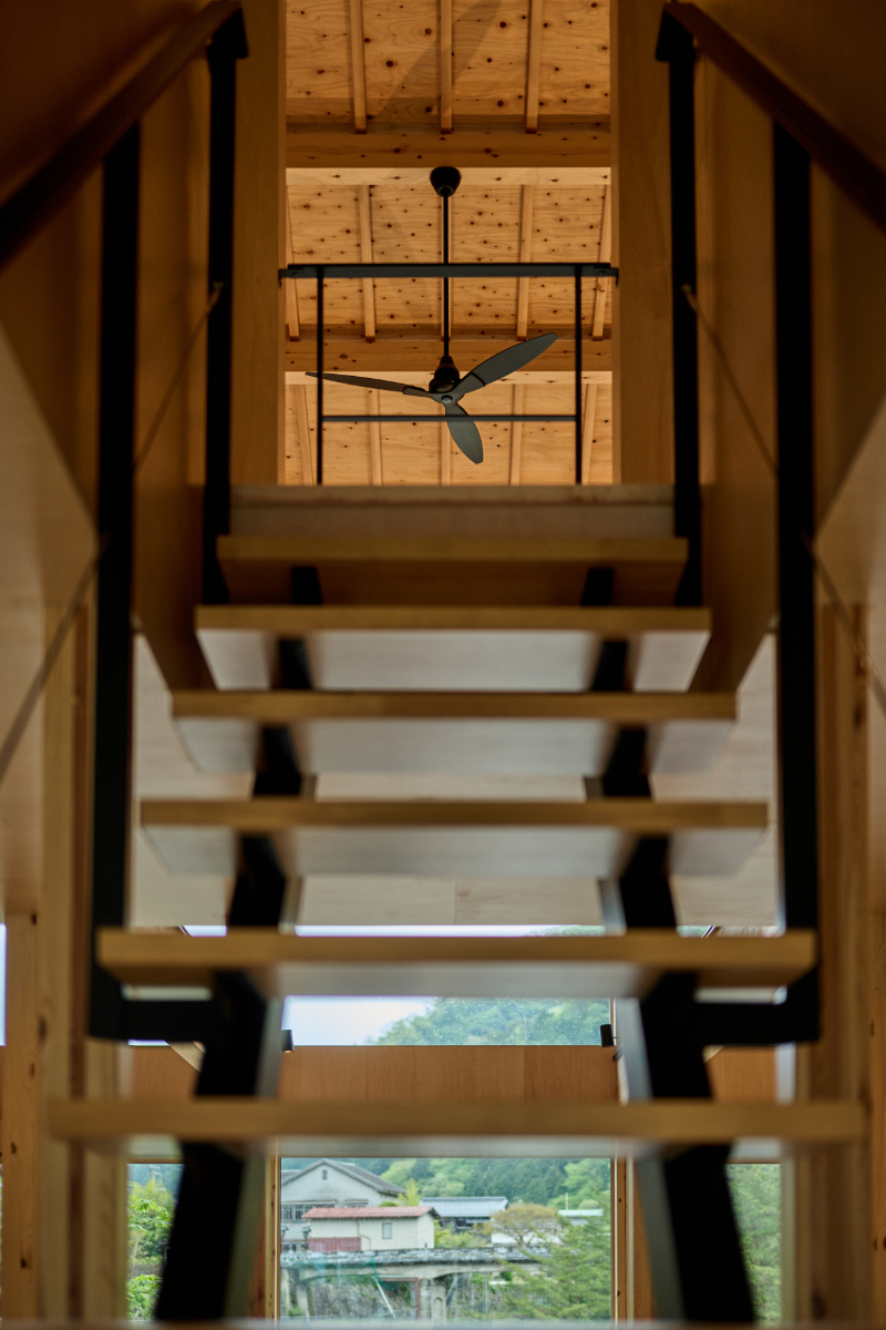 町内を流れる市川を見渡せるガラス張りで開放的なお宿です。