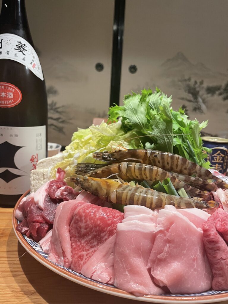 猪や牛、豚、鶏に加えて、明石で取れた海鮮と新鮮なお野菜がたっぷり入っています。