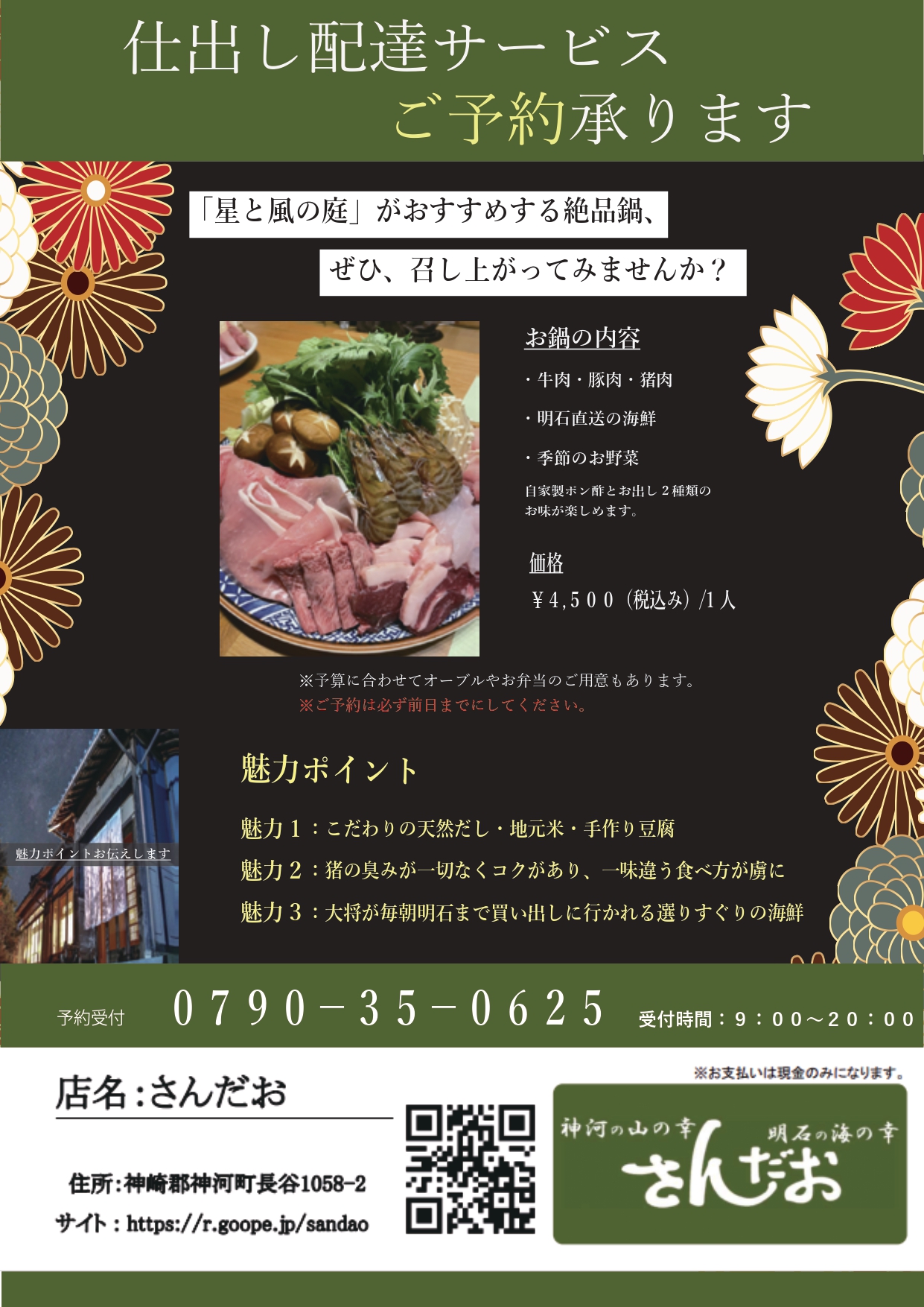 👉 【提供先】さんだお ☎:0790-35-0625(受付時間9:00~20:00)